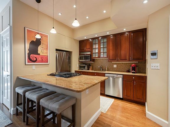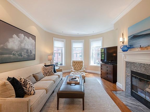 Renovated two-bedroom, two full bath on the Back Bay/South End border with private covered deck and direct access to full parking. Kitchen features gas range, cherry cabinets, granite counter top, breakfast bar with stool seating and stainless steel appliances. Access private deck off kitchen through floor to ceiling glass door. Dining room flows seamlessly into living area with wood burning fireplace and three windows. Master suite offers generous walk-in closet and en suite bath with double sink vanity and step-in shower. Second bedroom offers queen bed wall. Second full bathroom features tub/shower. In-unit washer/dryer, hardwood floors, recessed lighting and central A/C complete this offering. View of Southwest Corridor & Titus Sparrow Park. Quiet dead end St. Excellent proximity to shops, restaurants and public transportation. Pets considered on a case-by-case basis/ negotiable. Hope is vacant and easy to show at any time. **Facetime/Live Walk Thru** available if pref.