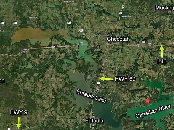 10 +/- ACRES LESS THAN 1 MILE FROM LAKE EUFAULA — PRIME LOCATION BETWEEN EUFAULA AND CHECOTAH! Here's your chance to own a versatile 10 +/- acre property in an excellent recreational area, just minutes from Lake Eufaula and a short drive to both Checotah and Eufaula. Tucked into the peaceful countryside, this property offers excellent access and flexibility for a variety of uses, whether you're looking to build, escape for the weekends, or start a small hobby farm. The location couldn't be better or more convenient. You're just 8 miles from HWY 69, 13 miles from HWY 9, and only 14 miles from I-40, making it easy to reach Tulsa, OKC, or Fort Smith. Downtown Checotah sits just 16 miles away, while Eufaula's downtown shops, restaurants, and lakefront attractions are only 13 miles down the road. Just under a mile from Lake Eufaula, one of Oklahoma's largest and most popular lakes, this property offers quick access to boating, fishing, swimming, and over 600 miles of shoreline to explore. From weekend getaways to everyday outdoor living, the lake's year-round recreation adds unbeatable value and lifestyle appeal. If you're planning to build now or invest for the future, this property offers the rare combination of location, utility, and rural charm. Schedule your private tour today!