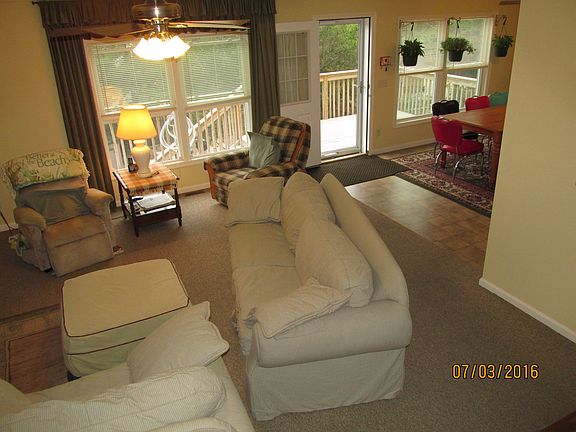 Home Description: Large custom designed 3 level contemporary. Built in 2006. Newest house on the street. Cozy, comfortable, and secure. Set up for year round living. Ideal for entertaining large groups. 5 Bedrooms, 3 Full Baths. Bright, clean, and spacious (approx. 3000 sq. ft. under a/c + large 2 car garage). The outside stairs to the Main (2nd) level entrance is off the deck at the rear of the home. This home is in a well protected location. There was no damage from recent or historic storms. Surrounded by great neighbors who have been here for many years. Main (2nd) Level: Home is oriented with the Main (2nd) level open concept living room, dining, and kitchen facing south to catch the ocean breezes in the summer, and the sun in the winter. Also on the Main level are 2 decks, 3 large bedrooms, 2 full baths, and a laundry/pantry. The home’s 32’ width is the maximum permitted by set back requirements. Not having the outside entry stairs in front allows the home to be larger (closer to the street and wider) while still maintaining a rear yard. Upper (3rd) Level: 1 large bedroom, 1 very large dormitory bedroom/rec-room, 1 full bath, front deck, and several large closets. Separate central heating and AC unit for this level. Lower (1st) Level: Recessed side entry to the ground level foyer with interior stairs to Main & Upper levels. 2nd laundry room, recreation room, storage rooms, and very large 2 car garage. Outside shower. Screened porch. Property Details: Single family – Lot size 50 x 125. Public sewers and water. Andersen Impact Resistant (Hurricane) windows & sliders. Premium high wind and algae resistant asphalt roofing. 2 Rheem High Efficiency natural gas forced air heating and central a/c units. 12 Ceiling fans. Dishwasher. Electric ceramic top self-cleaning range(gas line available). Two kitchen refrigerators. Two Washers (main & lower level).Two Dryers ((gas and elec.) main & lower level). Gas line available in LR for fireplace. 2015 Taxes $6889 (Tax rate is one of the lowest in the state). 2016 Flood insurance $466. Storage shed. Storm doors on all ext. doors. Most furnishings included. Great potential as a family reunion rental. Sleeps 18! Home is a lot bigger than it appears.
