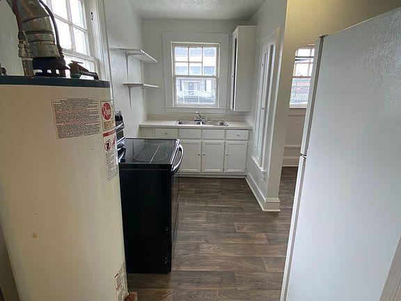 One-bedroom, one-bath duplex featuring a living room, kitchen with electric smooth-top range and refrigerator, laundry connections, gas water heater, window A/C, and gas wall heat. MOVE-IN SPECIAL: $200 OFF THE FIRST MONTH'S RENT! No Section 8.