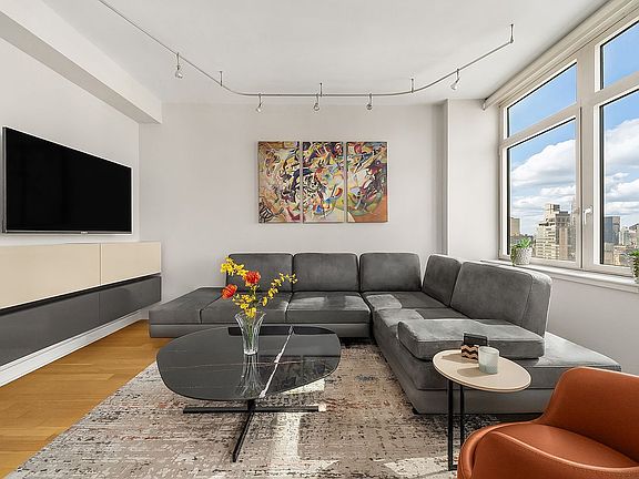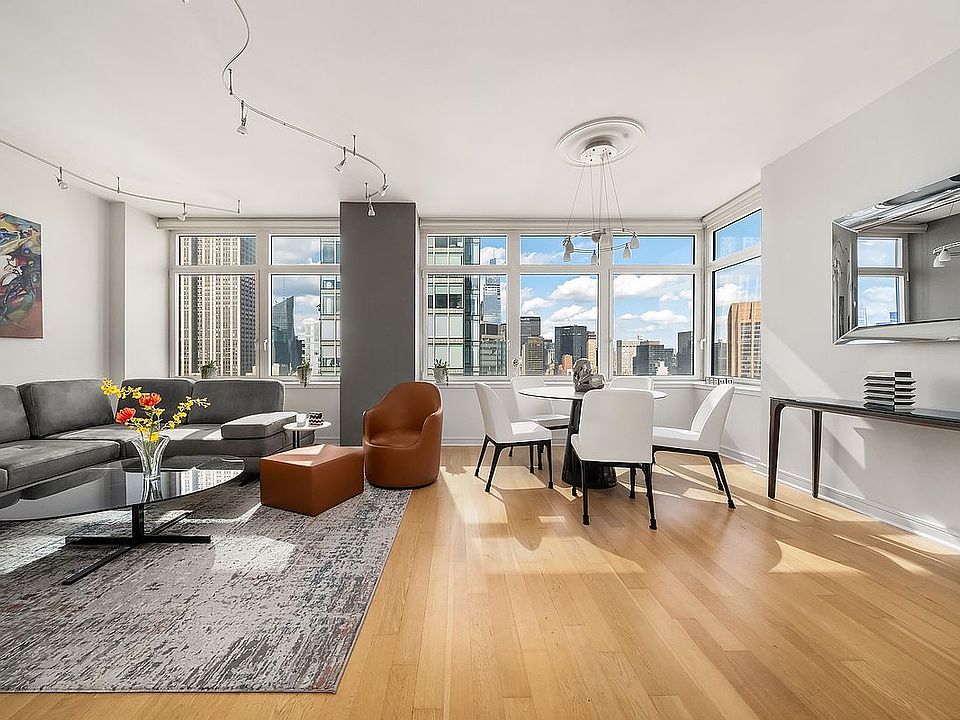 Huge, move-in-ready 991-square foot one-bedroom/one-and-a-half-bathroom home with spectacular views of the Empire State Building, Chrysler Building, Manhattan skyline, and both the Hudson and East Rivers from three exposures and wraparound windows.
