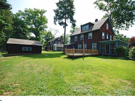 Beautiful Bordentown Colonial that features updated eat in kitchen with solid surface counters, replacement windows throughout, central Air Conditioning and Gas heat. Large screened porch accessible through french doors from the dining room or the large living room. Gleaming hardwood floors throughout the home. Formal dining room. Large rear deck at the back of the home. Two car detached garage. Second floor consists of 3 or 4 bedrooms, the smallest bedroom is presently being used as a laundry area. Another set of steps lead to the 3rd floor finished attic which is finished into 2 additional rooms which would be great for and in home office or bedroom. Seller is not aware if the fireplace is operational.