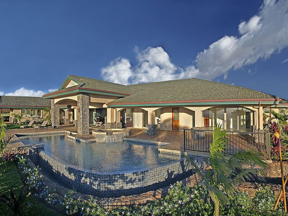 Magnificent custom home situated at the top of this prestigious gated community with incredible views of both Lanai and Molokai. This single level home offers luxury throughout, and features a large office, media room and wine cellar. ' A Must See'