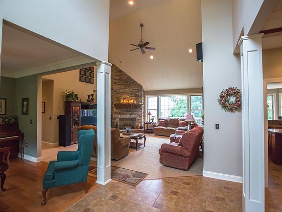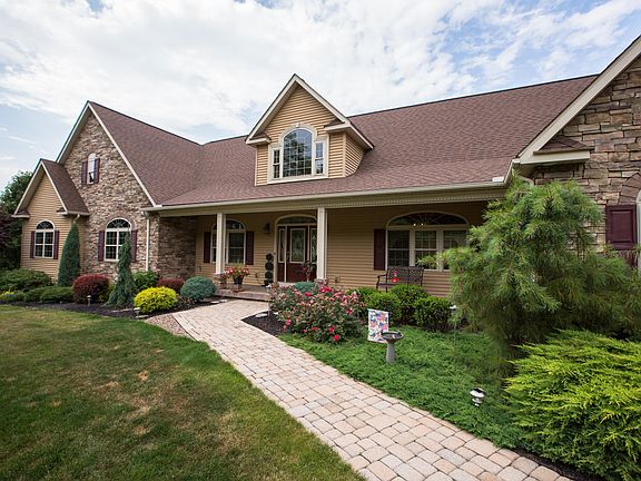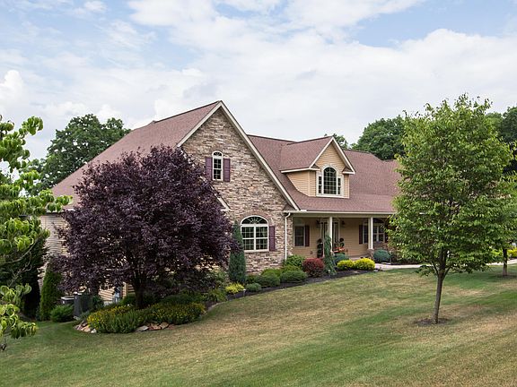 Spectacular views! Over 4000sqft of highest quality living space inlcuding the finished daylight LL. This gorgeous 3BR,3.5BA RANCH home features soaring ceilings and an open floor plan. Beautiful, gourmet kitchen with island, second prep sink, endless granite counters, custom cherry cabinetry, penninsula, eat-in nook, walk-in pantry, stainless steel appliances, tile backsplash & floor. Formal dining room, HW, layered tray ceiling with up-lighting, dental crown molding and chair rail. Great room with vaulted ceiling, stone gas fireplace, new Karastan carpet. Master en suite with 2 sided fireplace, jetted tub, custom tile shower, heated tile floor. His & Her closets. Hipped ceiling. Beautiful fixtures throughout home bring subtle lighting wherever needed. Finished, day- light/walk-out LL with third bath. Unfinished utility area stores two dual source heat pumps, central vac, on-demand hot water heater and 4th garage bay. Whole house generator system. All surrounded by 1000+acres of State Game Lands. The detailed amenities will astound!