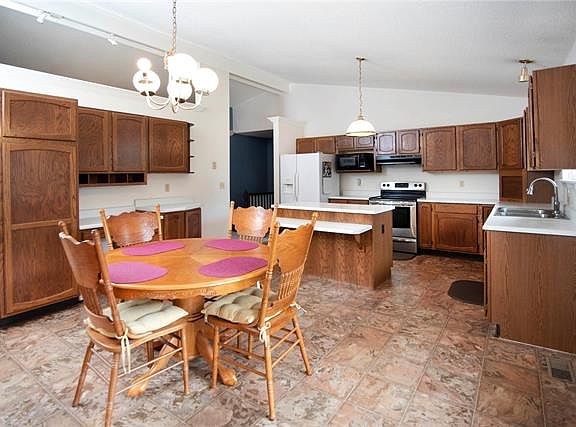 Beautiful 4 bed 3 bath ranch offers over 2400 sqft of living space. This home has been well cared for and the pride of ownership shows. You are greeted with a spacious family room with plenty of natural light and vaulted ceilings. The substantial eat in kitchen offers an abundance of counter and cabinet space, large center island, vaulted ceilings, desk space, and leads to the sunroom. The large master bedroom offers double closets and full bath. The two additional ancillary bedrooms on the main floor are nice in size and neutral in color. The full finished lower level offers an additional bedroom, full bath, storage room, and large rec room. The roof, vinyl siding, gutters, HVAC system, and composite deck have all been replaced during sellers ownership with some warranties available. This home is nestled on a .3 corner lot with fenced in back yard, over-sized garage, over-sized drive and newer composite deck with easy access to HWY 70.