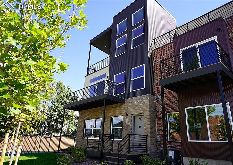 Urbanite Living at it's FINEST! Turn-key, luxury, maintenance free townhome in the historic Ivywild neighborhood. CITY and MOUNTAIN VIEWS!!! Detailed interior designs with 9' ceilings, Heat N GLO 58" electric fireplace, Smart Sterling maple cabinets with crown molding, quartz countertop with 6" tile backsplash, stainless steel appliances, gas range and upgraded design center finishes in cool color scheme. Luxurious baths with quartz countertop and tile backsplash, ceramic tile shower w decorative accents, pedestal sink in powder room. Energy efficient features include a Rheem tankless water heater, LED lights thu out and pre-wired for air conditioning. Exceptional exterior details with stucco, brick and metal siding, composite decking and full development landscaping. Walking, biking trails to restaurants, retail, groceries and the Sante Fe trail. Close to downtown nightlife and 5 minutes to hwy 25. Great investment property, right-sizing or first time home buyers. Ivywild is going under a complete revitalization with retail, restaurants, boutique hotel all along the renovated creek. This is unit A in Building 7 with finished guest suite and bath on ground floor, upgraded designer spec package in COOL scheme, air conditioning, 200 amp circuit, keyless entry keypad, gas range and ELEVATOR! MOVE IN READY!! Please visit ivywildtownhomes to learn more. Be sure and check out the Community Masterplan, click on creekwalk link, brochure and scroll down to see renderings of whats being built next door!
