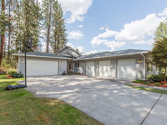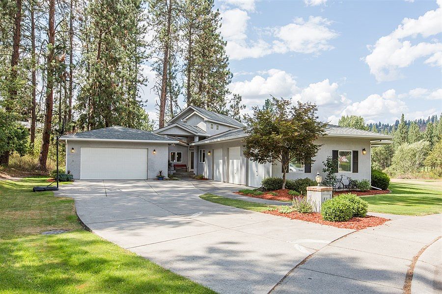 Outstanding one level home at end of cul-de-sac on the 17th hole of Qualchan Golf Course. Open floor plan with cathedral ceilings, light and bright. Office with French doors. Master suite with gas fireplace and walk-in closet. New covered redwood deck for entertaining or enjoying wildlife. Overlooking Latah Creek in a private setting. 5+ car garage including 1,000 square foot shop.
