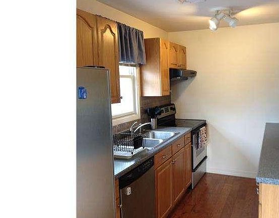 Meticulous home inside and out. One floor living, updated kitchen with oak cabinets, granite countertops, tile backsplash, and a double bowl stainless steel sink. Kitchen exhaust fan vented to the outside. The kitchen opens to large deck overlooking a park like setting. New windows and doors, plus a retractable awning for outdoor dining. Living room has ceiling fan and tons of natural light. Hall bath includes full laundry, plus lots of storage. Wonderful location - convenient to shopping, transportation and recreation. Attic and a full basement for additional storage.