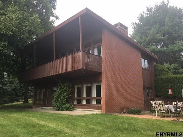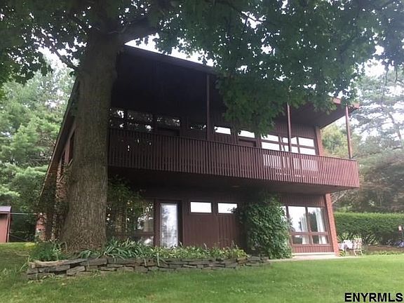 Striking and dramatic exterior to this homey and comfortable 4-bedroom contemporary. Lush 3/4 acre lot in a quiet Brunswick neighborhood. Sweeping second story deck provides wonderful views and plenty of light to upstairs rooms. Clearstory windows add to the interior style. Real wood tongue in groove paneling. Kitchen and baths in excellent condition. Newer carpeting. Two exterior buildings including a large workshop space. Front breezeway and patio off kitchen. Same owners for past 30 years.