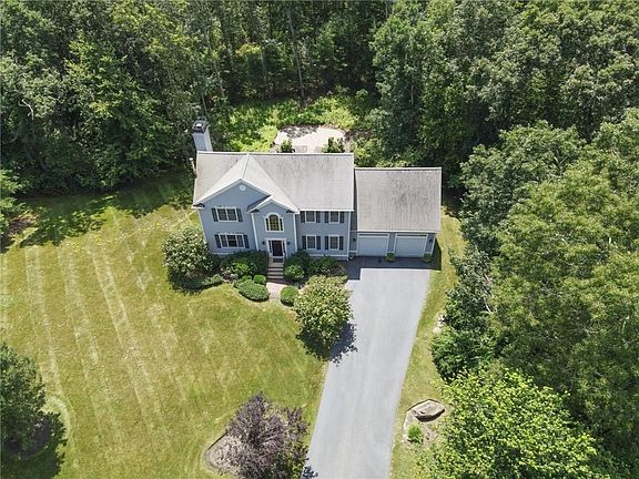 Situated on a private one-acre lot in a beautiful South County subdivision, this spectacular Colonial checks all the boxes! The spacious floorplan consists of multiple living and dining spaces to relax, work, and entertain - including a bonus room and a walkout lower-level. The new designer kitchen features a center island with seating for four, Bosch appliances, and a Fisher and Paykel dishwasher. Custom touches including plantation shutters, recessed lighting, and crown molding enhance the home's sophisticated flair. Upstairs, you'll find a primary bedroom suite with vaulted ceilings and a versatile attached bonus room, as well as two additional bedrooms and a full bath. Desirable amenities include central air, a lawn irrigation system, central vac, whole house water filter, fireplace and a generator hook-up. The backyard is surrounded by towering trees and abutting conservation land, and features a deck and patio for outdoor enjoyment. This is one you don't want to miss!