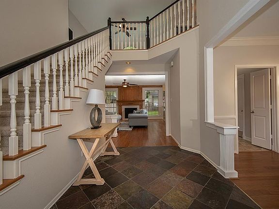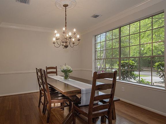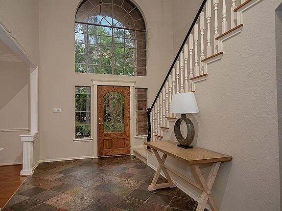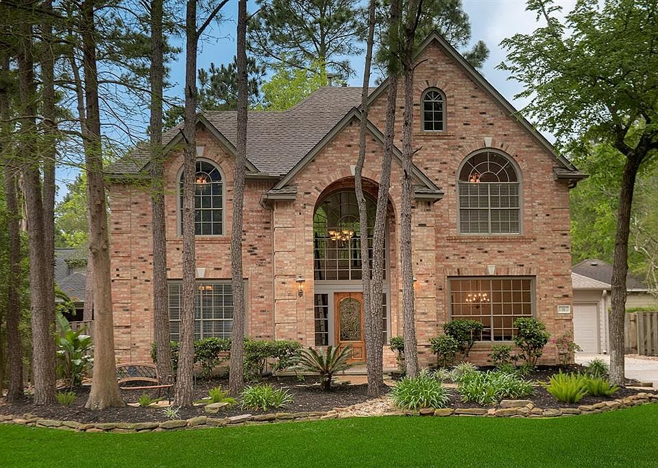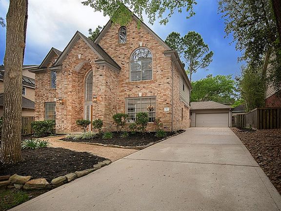 Beautifully updated LifeForms home (was former model home) in Cochran's Crossing! Great location that overlooks the park and is walking distance to Powell Elementary, with close proximity to I-45, Grand Pkwy and all Woodlands amenities! Open floor plan with soaring ceilings, generous room sizes, recent interior paint, new roof, new A/C upstairs, replaced carpet and bamboo wood floors 2015, new insulation and Nest thermostats added 2016, updated all landscaping, remodeled master bath, and much more! Island kitchen with breakfast bar, granite counters and plenty of sparkling white cabinets (fridge included) opens to sunny breakfast room and den with gas log fireplace; formal dining with crown moulding and chair rail; master retreat down; three bedrooms and game room up; oversized two car garage; fenced yard with covered patio has plenty of room for a pool!