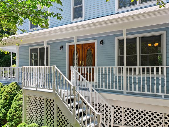 Tucked upon a long driveway, this home provides the benefits of in-town living with mid-country privacy. Moments to town, train and shopping. This fantastic home has bright open spaces, soaring ceilings, 2 master bedrooms, 3 additional bedrooms, 4 full baths and attached 2 car garage. One bedroom and bath are contained in an accessory apartment with a separate entrance and parking. Perfect for a Nanny, Aupair, or older children and parents. Amazing space, gorgeous hardwood floors, great sunlight and an open flow make this the perfect family home. With wonderful lower level entertainment space and fantastic flow, this home is a true gem. A delightful wrap around porch overlooking a fountain featured pond and huge decks allow for restful spaces to enjoy the lovely gardens. What a unique opportunity to live in downtown Greenwich in your own private oasis. Pets considered on a case by case basis. Renter responsible for all Utilities, Renters Insurance and Trash. Owner is responsible for ground maintenance. Bi weekly / monthly interior house cleanings are required, owners will provide if needed. 2 year lease is prefered.