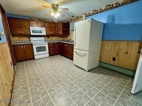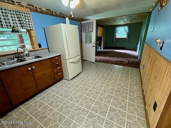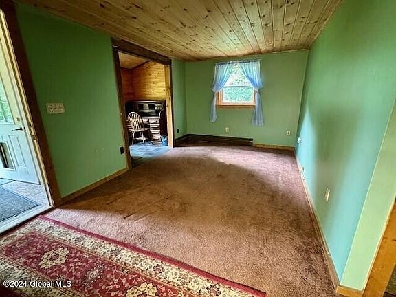 Four Season Getaway on hillside surrounded by woods with distant views of Vermont Green Mountains! Cute cottage with living room open to kitchen dining area, small office with wood stove, two bedrooms, full bath and good size laundry, enclosed sitting porch on front and screened in porch on rear, detached shed with small toy pole barn, oil boiler and b/b heating. Lots of fruit trees berry bushes planted by owner. Mins to Vermont Lake George and Saratoga!