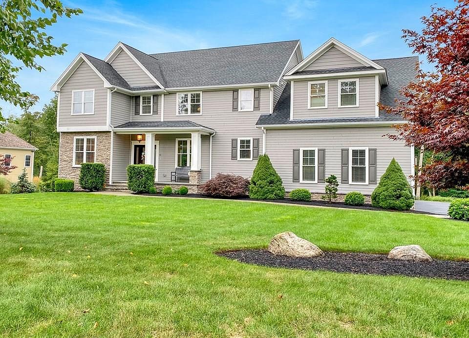 Beautifully built custom Colonial located in the highly sought after John Alden Farms neighborhood. Gracious open floor plan with soaring ceilings, featuring a chefs delight...stunning kitchen, large island, with white marble tops and high end stainless steel appliances. Floor to ceiling windows brings the outdoors in and baths the living room in light. The first floor also offers a den, and dining room, each with custom crown moulding and wainscotting. The second level includes a stunning master ensuite with double walk in closets. Three other children/guest rooms, separate bath with double vanity, laundry room complete the second level. The finished walk-out basement includes another bedroom/office, home gym, and media room. Many amenities such as additional custom cabinetry throughout, upgraded lighting, 3 bay garage, irrigation system, central AC, all located on an acre+ of manicured landscape.
