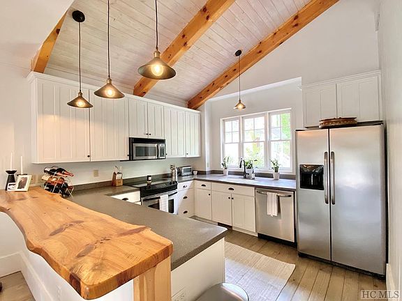 Charming cottage featuring in-town living, only 2 minutes from the crossroads, and walking distance to restaurants and shops. It has been remodelled inside and out including fresh low maintenance landscaping. It offers a back yard will potential for a great lawn and the property has a year round stream running along the back, right side. The 2 bedroom, 2.5 bath floor plan features a master suite on the main level with a guest suite upstairs. Some other features include a beautiful wood burning fireplace in the living room and a screened porch and spacious back deck. Move-in ready, this home is a charming cottage ready for you to enjoy the summer in Cashiers, and also has great rental potential. This home is a perfect, in-town option.