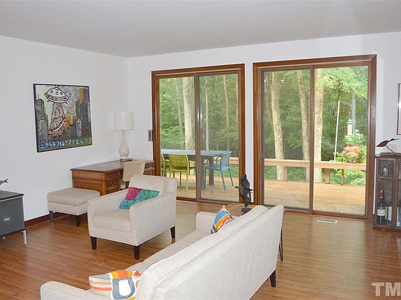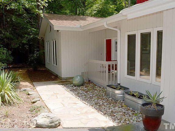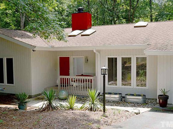 Ideally Located (Chapel hill address with Low Durham Taxes), this ENERGY EFFICIENT Ranch on a Large Private Lot BACKS onto acres of WOODED BUFFER and features: a Newly Tiled Entry with 2 skylights; a White Kitchen with 2 more skylights plus a NEW Dishwasher and Refrigerator; a Living Room that has Built-Ins and a wood-burning Brick Fireplace with Slatestone Hearth; All Tile Baths & Cellular Shades throughout. WELL MAINTAINED with: a NEW HVAC system-2012; NEW Water Heater, Gutters and Exterior Paint-2013; New Living Room, Dining Room and Kitchen Flooring-2011. LOW Utility Bills thanks to a fully SEALED CRAWL SPACE with Highly Efficient Spray-Foam Insulation. There’s also a BIG DECK with Expansive VIEWS of Hardwoods and a Fire Pit in the Backyard. The Community of Falconbridge has its own Pool, Clubhouse and Pond. Sellers provide a 1-year Home Warranty with an acceptable offer.