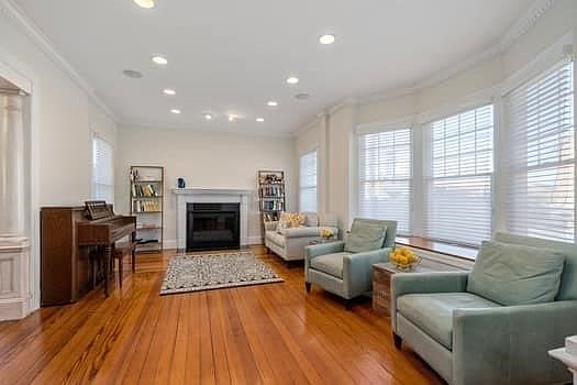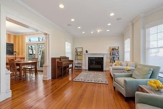 Welcome to this 8 room, 4/5-bedroom, 2full and 2 half bath Colonial located on a desirable side street in east Watertown. The first floor has soaring ceilings, hardwood floors, amazing natural light, captivating Foyer w/Old World mill work, formal LR w/fireplace, Dining Room or Family Room w/fireplace, large kitchen w/granite and stainless appliances, ample cabinets and perfect eat-in-kitchen area w/cabinetry. 2nd floor has hardwood floors, 3 bedrooms and two full baths. 3rd floor offers another bedroom plus office space. Lower level has finished recreation space w/half bath, laundry and ample storage space. Private fenced in yard w/gardens and patio area. Superb location close to shops, restaurants, bus route to Cambridge. Also, minutes to the new Arsenal Yards, Watertown Mall, Brighton Landing, Cambridge and Boston. An exceptional Offering!