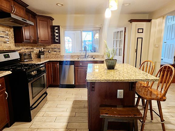 Available now. Renovated 2 Bed / 1 Bath apartment located next to Maverick Square/Jeffries Point neighborhood in East Boston. This second floor, 900+ unit features a modern kitchen (stainless appliances, granite counters and island), open dining room, separate living room, large primary bedroom, medium sized second bedroom, tiled bathroom with stand-up shower, hardwood floors throughout and private outdoor deck. Location is 1 block from the Maverick MBTA and the Waterfront with direct access to Downtown Boston in couple minutes by T or ferry. No laundry on site, cats ok, no dogs.