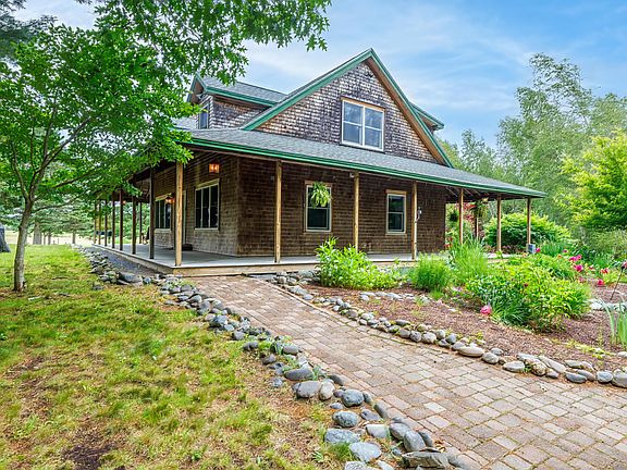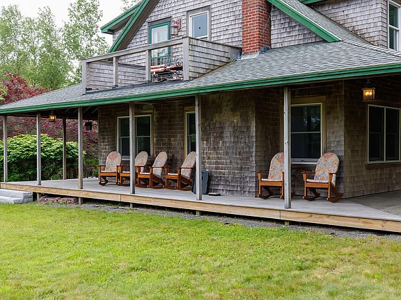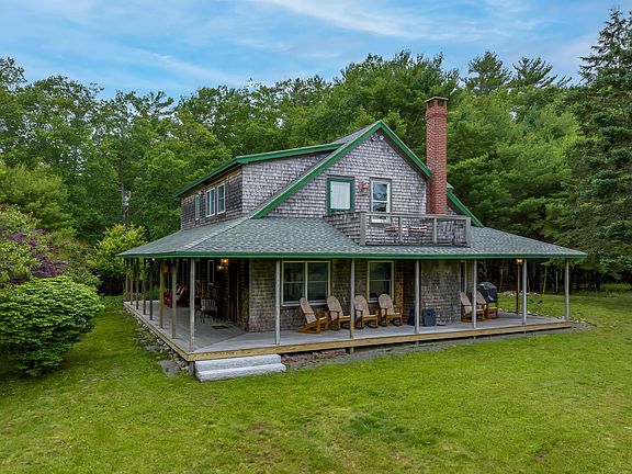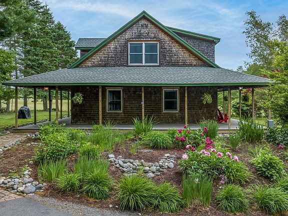 Three bedroom two bath cape style home in a picturesque country setting off the Crooked Road but just 4 miles to town. Bordering The Smith Family organic farm on one side and abutting a piece of Acadia National Park on the other, makes this quiet country setting so enjoyable after a busy day in the park by just relaxing on the full wrap around porch looking out into the fields on one side and tall pine and oak trees on the other. Open floor plan with a large cathedral living room that flows into the kitchen and dining area with two bedrooms and a bath down and the master bedroom and bath with a loft office up. There is also a separate art studio and a sugar shack as well as a detached two car garage with storage above and quonset hut for more storage. Beautiful details in the home that include hand painted tile work in the kitchen and bathrooms and cozy fireplace for the chilly nights. Very private 2.34 acre lot at the end of the drive but the extra abutting acreage of the park makes it feel like you have a much bigger private back woods area to walk. Well maintained, landscaped grounds, groomed flower beds with a blend of perennials, flowers, fruit trees, berry bushes and meandering stone walkways. Enjoy watching the sunrise from the upper deck off the office loft area or just sit in one of the many Adirondacks on the 180' of covered porch. Home comes tastefully furnished and ready for you to enjoy. Just two miles to the park entrance.