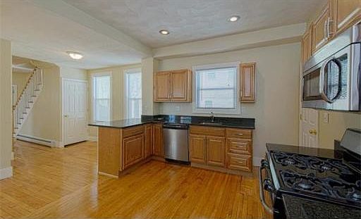 Large single family ready to move in - Open layout - Hardwood floors throughout - New Plumbing - New electric 100 AMP service - All blue board and plaster - New doors and windows - New gas heating system - Plenty of closets - Every room is hardwired for cable TV and internet - Granite counter top and stainless still appliances - 2 bathrooms - 4 bedrooms - Laundry hook up - MBTA # 111 to Boston just two blocks from the house.