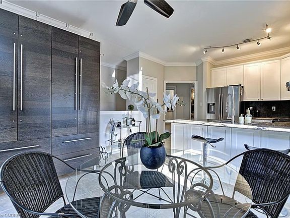 END UNIT Situated in a SOUGHT AFTER prime location! Just steps from Downtown Georgetown/Main St,the bustling farmers market & a 5-minute stroll to Halton Hills Library & Cultural Centre, Dayfoot Park & Mary St Park.It's a lifestyle that combines urban amenities w/the serenity of a friendly neighbourhood. HOMES IN THIS ENCLAVE RARELY COME TO MARKET, including this home with original owners being offered for the first time ever on the market. Sellers have lovingly made many upgrades over time & this home boasts a layout that flows seamlessly throughout the main living areas. The eat-in kitchen is a chef's dream, boasting stainless steel appliances, stunning quartz countertops, upgraded extra tall upper cabinets & French doors leading to the Juliette balcony, perfect for soaking in the fresh air. This townhome is adorned w/ elegant features, including 9' ceilings, crown molding & California shutters that bathe the space in natural light. Cozy up on chilly evenings in front of the gas fireplace in the spacious living area creating the perfect ambiance for relaxation. The functional layout includes 2 ensuite washrooms & walk-in closets,ensuring comfort & privacy for everyone.Upstairs, the oversized loft w/pot lights & balcony offers a versatile space that can be tailored to your needs,whether it's a home office,additional bedroom or entertainment area. The finished basement,complete w/laminate flooring,large window&garage access,opens up possibilities for a cozy retreat or an in-law suite conversion,due diligence required. Step outside onto the large balcony w/gas BBQ hook-up where you can soak in the gorgeous fall colours. Commuters dream with the Georgetown GO station is just a 1km walk away,making your daily travels a breeze.