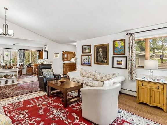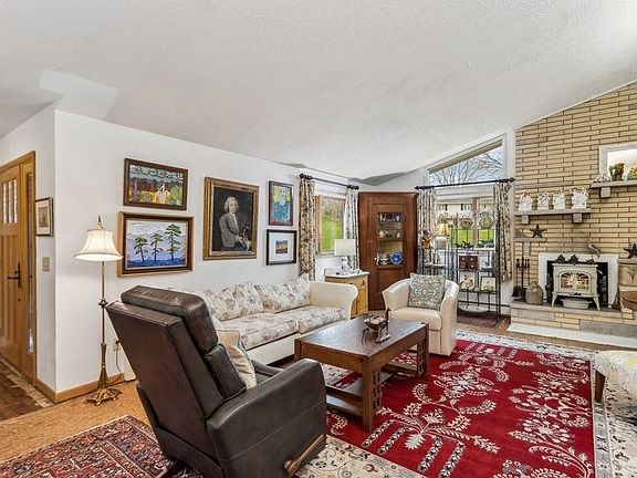 River Heights home offering a true 1960's spirit, situated on over a half an acre with private treed backyard. This mid-century gem offers authentic features and details with floor to ceiling brick fireplace, original wood kitchen cabinetry, built-in wood drawers and cabinets and a custom designed wrought iron railing. Main level provides excellent entertaining space with living room with vaulted ceiling and dramatic fireplace, dining area with wall of windows and kitchen with ample counters and cabinetry; upper level has 3 bedrooms with hardwood flooring and bath with original tiles; lower level provides library with built-in book shelves and family room area with access to outside, and additional guest bedroom and half bath. The washer/dryer, utility room and storage area in the level below has a shower. The intrinsic charm is felt throughout this delightful home with many updates and improvements: new gutters (2023), new boiler (2020), 5 mini-splits (2022), cement board siding, updated appliances with Viking refrigerator and Bosch cooktop, granite kitchen counters, new windows in living room and dining area, new exterior Mission-Style oak wood doors, Vermont wood burning stove, wood floors, lighting fixtures, European door hardware, garage outlet for EV. Charming vintage vibe throughout. Sold "As Is", to be continued by new owner.