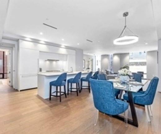 Spacious 3 bed 2.5 bath condo located in the Seaport District at the corner of Farnsworth and Congress Street. The elevator opens directly into the unit to reveal an open concept living area well appointed with top tier appliances and finishes throughout. The chef's kitchen features a large marble waterfall countertop and a suite of Gaggenau appliances. Floor to ceiling windows line the living area rounded out with a gas fireplace. A full compliment of additional smart home features can be easily added as the networks and panel are in place. The master suite includes a generous walk in closet built out with custom Italian lacquer wardrobes and designer master bath. 1 parking spot in the automated garage beneath the building is included. A large common roof deck rounds out the property walled in for full privacy. With only 10 units in the building a quiet private experience is assured in the heart of the Seaport District.