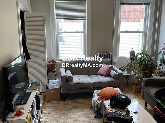 A very attractive 3 bedroom apt in a 3 family house in Teele Square, walk to Davis, catch route 2, and 16, and Cambridge. Alewife Parkway several blocks away. Three large bedrooms, great living room, very large eat-in kitchen with DW, large pantry and open rear porch overlooking very large garden space for parties, grilling and outdoor fun. Gas heat and stove, full bath, Free laundry in basement, 3 car driveway available for rent $75 pm.
