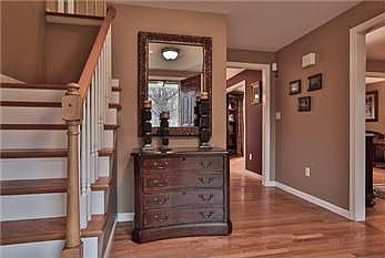 Serenity found in absolutely beautiful, upgraded Colonial with three levels of living set high upon almost 2 acres of gorgeously landscaped grounds with 3 seasons of blooming color. Warm and inviting Granite Kitchen features under-cabinet lighting, extended island for seating, stainless appliances and plenty of cabinets featuring pull out drawers in pantry. Dining area offers beautiful sunset views and leads to large deck and stone-paved patio to enjoy the outdoors with the tranquility of trees as your backdrop. Highly versatile floor plan features hardwoods throughout. Relax in the fire-placed Living Room open to a Family Room off the kitchen. Adjacent Dining Room/Den or Home Office features crown molding , wainscoting and 2 sets of French Doors. Four generous bedrooms include a Master Bedroom w/walk in closet and private bathroom/shower. Spacious and almost soundproof, the 3rd floor offers the 4th bedroom and a large media room/office. All around lovely property!