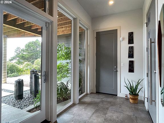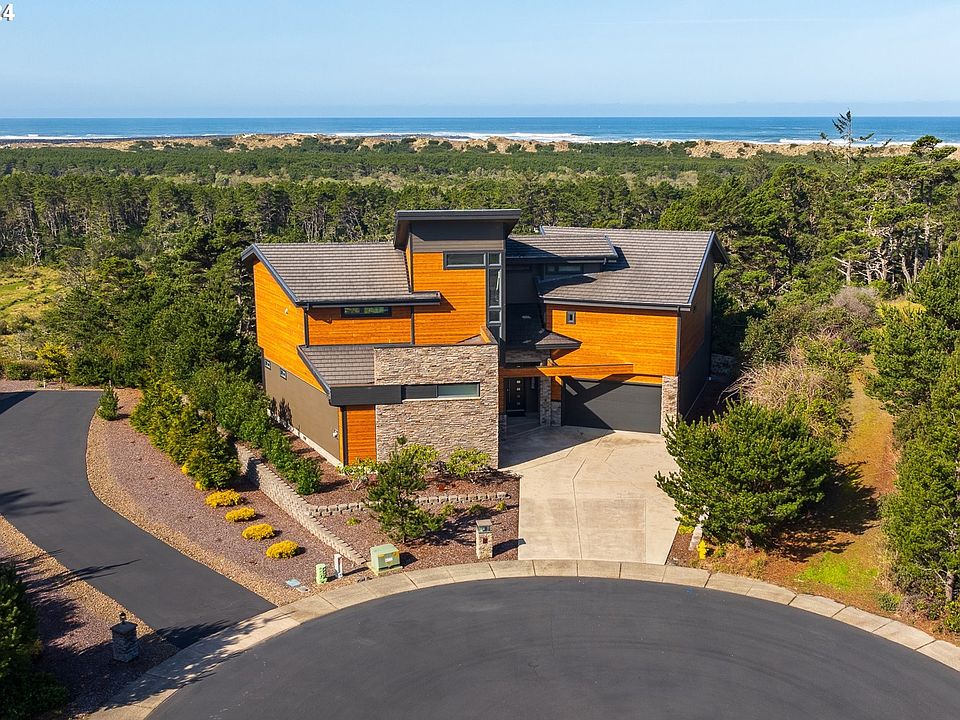 Indulge in the epitome of luxury living with this exquisite ocean and lake view home nestled within the prestigious Fawn Ridge West community. Beyond its private gated entrance lies a 2800 sq ft masterpiece, exuding sophistication and charm at every turn. As you step onto the main living area, you're greeted by panoramic views of the ocean and lake, setting the tone for the grandeur within. The warmth of the home is enhanced by the high efficiency Warmboard radiant heating https://www.warmboard.com ensuring comfort throughout the space, complemented by vaulted ceilings and abundant natural light. Entertainment is effortless with a custom surround sound system in the dramatic living room, seamlessly integrated with a concealed theater system. The living room has a dramatic fireplace for those cozy winter nights. The kitchen is a culinary haven, with Stainless Steel Jenn-Air appliances, custom maple cabinets, quartz counters, and under cabinet lighting, plus an adjacent pantry and Dumbwaiter to the lower-level for groceries and laundry. The main level features the primary bedroom suite, offering unparalleled views, luxurious amenities including a slipper tub, large tile shower, heated towel bars and two walk-in closets. The custom Trex deck is partially covered, heated and accessible from the living room and the primary suite. Descending to the lower level reveals more living spaces, an additional bedroom with a built in Murphy Bed and full bathroom, an adjacent office, laundry room, and a storage room. The 2 bedrooms, 2.5 bathrooms and abundant storage of this home provide ample space for living and entertaining, all illuminated by the brilliance of the adjacent Japanese style garden, creating an idyllic retreat. The home is equipped with a whole-home generator panel for uninterrupted comfort and convenience. With a single car garage on one side equipped for electric car charging and a three-car garage on the other, this home combines practicality with opulence.
