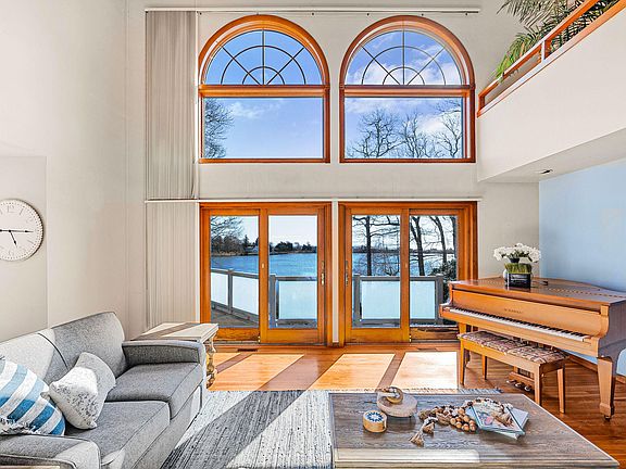 Waterfront living on Oyster Pond! This sun-drenched contemporary offers 2,600+ sq ft of beautifully designed space with stunning water views. A wall of windows fills the open-concept living area with natural light and opens to a spacious deck--perfect for relaxing or entertaining. With 3 bedrooms, 2.5 baths, a 2-car garage, and a versatile loft upstairs, there's plenty of flex space. Hardwood floors on the first level and upstairs loft, new carpet upstairs, a brand new septic system, and pond access for sailing and kayaking from your private dock. Set in a peaceful, quiet setting with access to the private Quisset beach association and close to the beach, downtown Falmouth, restaurants, and the ferry to the Vineyard--this home is ideal as a year-round residence, summer getaway, or weekend retreat. Move-in ready--this is the waterfront lifestyle you've been waiting for!