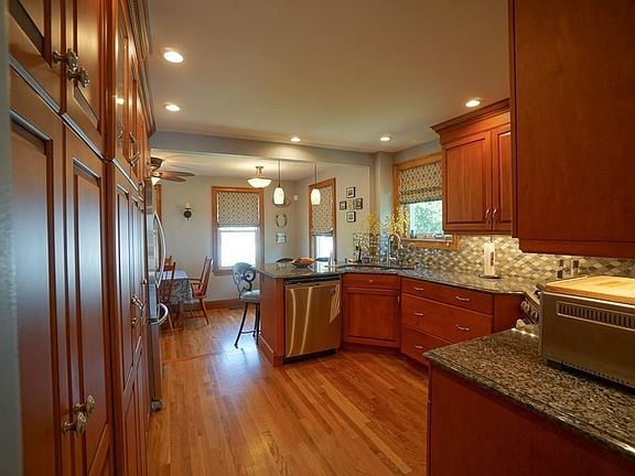 Bright and sunny, well maintained Colonial with lots of updates! Come relax on the three season porch or entertain in the upgraded cabinet packed kitchen featuring stainless steel gas appliances and a large eat-in dining area. Gleaming hardwood flooring throughout the entire first floor with lots of recessed lighting. Spacious tiled full bath on the second floor w/ granite and ceiling fan. Walk-up attic with storage space. Detached single car garage with new door.
