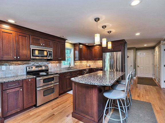 Beautifully appointed 3BR, 3BA Colonial located in one of the area’s most desirable neighborhoods, offering easy access to highways, shopping, and everyday conveniences. Spacious, open-concept layout featuring a large kitchen with center island, separate breakfast bar, and wine fridge—perfect for entertaining. The bright and sunny dining room flows seamlessly from the kitchen. A full-season sunroom provides a tranquil retreat, overlooking the back and side yard. A dedicated office with custom built-ins makes working from home a pleasure. Upstairs, you’ll find three generously sized bedrooms, including a unique bonus room with French doors and cathedral ceiling—ideal as a playroom, studio, or second office. The finished basement offers space for a full home gym, potential for an additional bedroom complete with its own walk-in closet—perfect for guests or extended family. Enjoy summer days in your private, fenced-in yard with in-ground pool and ample space for outdoor living. This home blends comfort, functionality, and style in a prime location—don’t miss this rare opportunity!