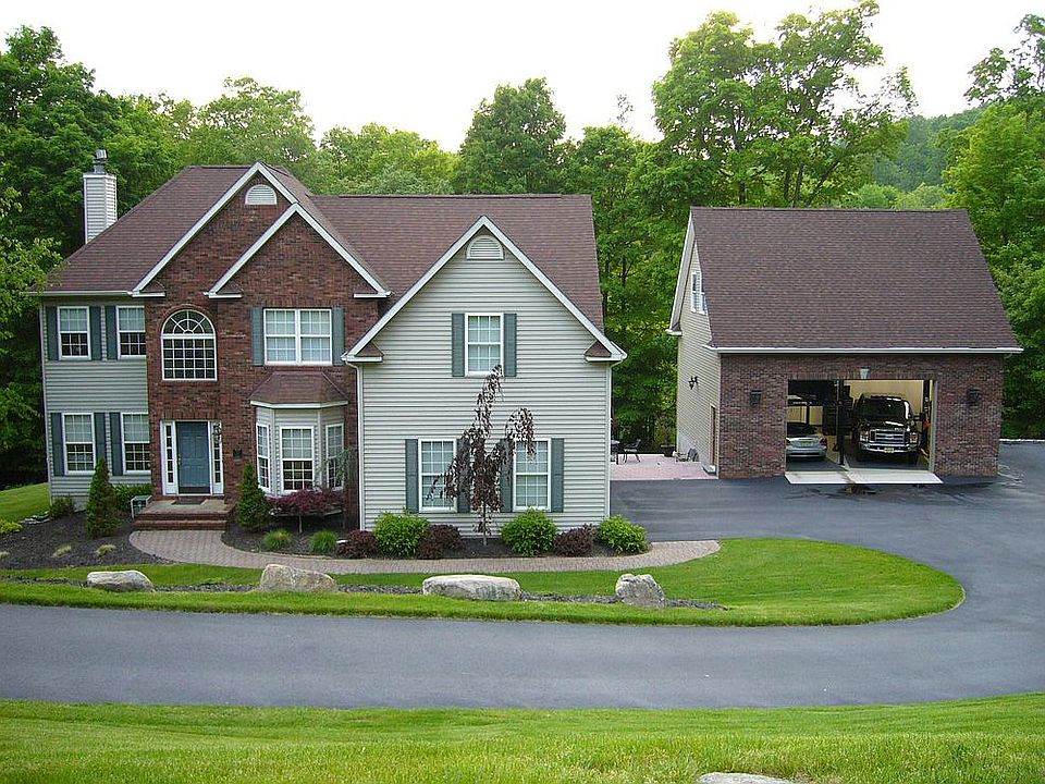 Built in 1995 Modern style center hall colonial, Two story foyer & two story great room with wood burning fireplace, Hardwood floors on first floor, beautiful kitchen with granite counter tops & tile backsplash, stainless steel appliances. Large master bedroom with tray ceiling, master bath with dual sink vanity, Jacuzzi soaking tub, vaulted ceiling, walk in closet. Beautiful tile work throughout. Huge detached garage with 13 foot clear ceiling with two lifts. One four post lift & one two post service lift. Huge unfinished 2nd floor can be made into an apartment.