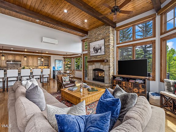 This custom-built, 5-bedroom single family home with separate, dedicated office offers an exceptional balance of luxury, comfort, and functionality. The open-concept main level showcases soaring 13-foot ceilings, dramatic wood beams, and a striking stacked-stone fireplace, all framed by expansive windows that drench the space with natural light. Step outside to enjoy the brand new, rebuilt, wrap-around Trex deck partially shaded by aspens in the summer with stunning foliage in the fall that yields to Beaver Creek and Arrowhead ski slope views in the winter. The thoughtfully designed split-level layout places the primary suite in its own private wing and conveniently separates 2 bedrooms and bathrooms upstairs from 2 more bedrooms and bathrooms downstairs. Each bedroom features its own bath (all remodeled in 2025) plus a 6th full bathroom adjacent to the living area for easy guest access. The spacious lower-level family room includes a wet bar and opens directly to an expansive patio with brand new hot tub and flat, grassy back yard, creating an inviting space for all ages to relax after a day on the slopes, the golf course, or neighborhood hiking and biking trails. Additional highlights include an extended 3-car heated garage with ample space for skis, bikes, dirt bikes, and paddleboards, a custom mud room, 2 laundry rooms, and 4 air conditioning splits for summertime comfort in delightfully sunny Singletree. Offered furnished and in immaculate condition, this home is truly move-in ready. Please see the Documents Tab for a list of features and updates.