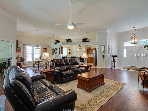 Delaware Model, wooded view located in one of Bluffton's best-kept secrets Eagle's Pointe. This is a community amidst a challenging Davis Love 111 designed semi-private golf course. Amenities include clubhouse, community pool, tennis, fitness center, the 7.5-acre lake with a 3/4 mile walking path surrounding the lake. This one level home has 3 Bedrooms, 2 Baths, 2 car garage, and tons of light, updated kitchen with quartz counters and engineered wood flooring Updates include Roof (2016) HVAC (2016) Appliances (2017) Comfortable screened porch with glass slider windows overlooking a beautifully manicured private rear yard with patio.