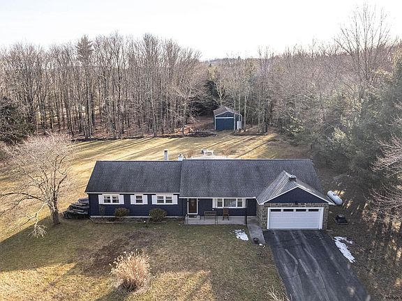 Tucked away at the foothills of the Catskills Proper in Grahamsville, you will find modern living at its finest in this updated vintage ranch style home! The property is nestled into a private neighborhood with a tree-lined lot, with sections of open land and dense woodlands. Walk into the open living floor plan with a recently updated gourmet style kitchen and dining room. There is a center island with a hood range and a double sink to accommodate all culinary needs. Standing in the kitchen, you will feel the sunlight which pours in through the sliding glass doors from the sunroom, with southern exposure. The sunroom is suited for three seasons, but could easily be fitted for all season enjoyment. Cozy up to the pellet stove in the main living room, which generates enough heat for the living room and other areas of the house. The main hallway is filled with natural light from the oversized windows in the secondary bedrooms and the main bathroom. You will find the primary bedroom is bright and expansive with additional space for a seating area or an at home office. The master bedroom was recently renovated with new fresh modern updates including newly tiled flooring and shower. There is a full unfinished basement with walkout access and a woodstove to keep the downstairs warmed. The basement can be finished for additional useable living space with proper permitting. Walking into the back yard, you will find dedicated space for gardening and a patio. Towards the rear of the property, edging into the woods, there is an existing pole barn with electric for storage, or convert to a studio or a recreational building for outdoor enjoyment, the possibilities are endless! There is a garden shed with electric hookup close by the barn. The additional parcel with 1.25 acres has sewer hookup and can be a buildable site with the proper permits. Come in for a tour to see all of the possibilities that you can create!