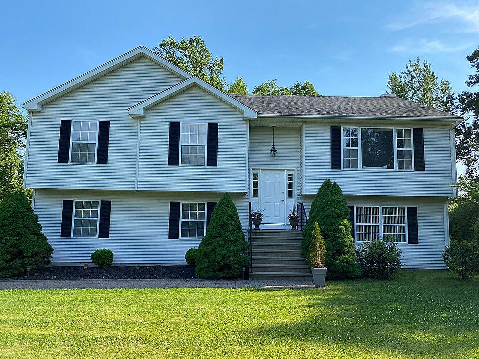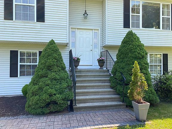 Raised ranch located on a substantial plot of private land in Seymour Connecticut. The upper level has an open concept design with a living room that extends into a formal dining room with sliding doors that open up to the deck. The deck overlooks the sizable backyard with 2 sheds. The lot of land is fenced in by the surrounding nature that includes an abundance of beautiful trees and bushes. Adjacent to the dining room is the spacious modern kitchen, with counter seating furnished with a dishwasher, microwave, gas stove, and refrigerator. There are three bedrooms on the upper level and 2 full baths. The master bedroom has its own bathroom. The lower level consists of a family room with large window and sliders to the back yard, full bathroom and Laundry. 2 car garage under. A must see.