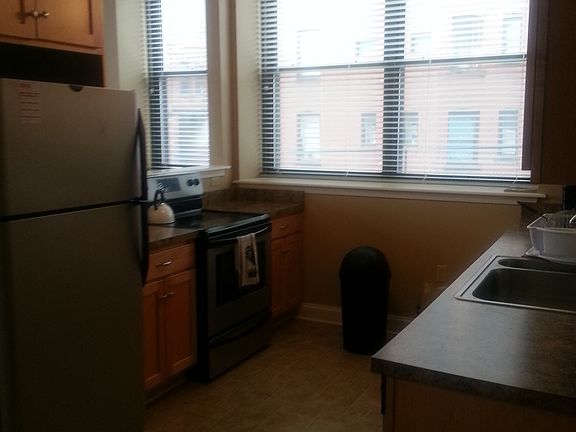 Newly redone, Spacious, loft style apartment- 2 bedroom 1 1/2 bath, Open Floor plan with High ceilings, ceiling fans, custom paint, cabinets, counters, eat in kitchen with all appliances. Open Dining and living area with large windows and lots of light! Wall to wall carpet! Lots of closet space. Central A/C and Gas forced air heat Coin laundry on each floor, off street parking, fitness room, key less entry. Community Room, Off street parking. Maintenance Free Living! Small pets welcome with non-refundable pet fee. We have an application process for approval of all new tenants. We require a background check, a minimum of 2 landlord references, Employment references and verification of income with paystubs and W2?s. You must have an earned income that equals a minimum of 3X the monthly rent. All tenants are required to have proof of Utilities at our property and proof of rental insurance prior to signing a lease or receiving keys.and proof of rental insurance prior to signing a lease or receiving keys Water, sewer and trash included. Tenant pays own utilities.