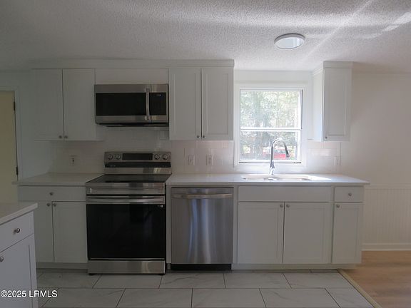 Just 1 mile from Sams Point Boat Landing and minutes from Beaufort, this beautifully updated home lives large with an open floor plan and many new componets including quartz countertops, cabinets, appliances, LVP flooring, and lighting.