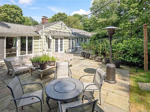 PRICE REDUCED! MAKE OFFER! Private, perfectly situated ranch located on quiet cul-de-sac. Enjoy one level living with spacious rooms and several access points to the beautifully manicured property. Expansive EIK has french doors to the slate patio-for easy entertaining, gardening, grilling and relaxing. The skylight and new windows allow for sun filled rooms throughout the day. Cozy family room has tray ceiling, floor-to-ceiling windows and sliding door leading to the patio and backyard. The circular flow continues to the dining and living room with hardwood floors and wood burning fireplace. Master ensuite is well appointed w/ large, new windows, spacious walk-in-closet and remodeled bath and it overlooks a new hot tub-ideal for chilly fall CT evenings. 3 add'l, generous sized bedrooms w/ hardwood floors and a full & half bath complete this single floor home. A full basement could easily be finished or used for rec/mudroom space. A tandem 4 car attached garage fulfills all your storage and parking needs. Newer central air, new windows & gutters, freshly painted exterior, 1 yr HOME WARRANTY, Generator hook-up, Newer septic. This house is move in ready. App. 35 minutes on side roads to downtown Stamford, equal distance (5 min) to Wilton schools/Center and Main Street in Ridgefield. The best of both Towns! Picturesque property on quiet street, easy living, incredible outdoor space with lighting to enjoy with family and friends, turn-key!GREAT LOCATION, GREAT PRICE=GREAT VALUE!