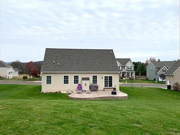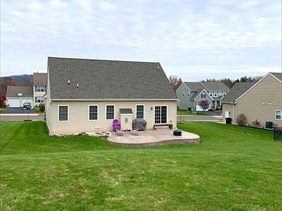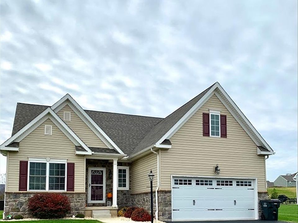 Three-year-old cream puff. Out side features include over sized lot with front, rear and side yards. Maintenance free exterior. Inside features include 9~ ceilings first floor with open floor plan for kitchen, dining room and living room. Living room fits sectional sofa with gas marble fireplace. Dining room adjacent to rear slider to outside stamped concrete patio. Plush kitchen with 28 handles, center island work space , granite counter tops, six burner gas range and more. First floor has ~ bath and laundry facilities. Super value with first floor master bedroom and master bath. Lower level is over 900sf of future living space. Almost forgot to mention the over sized two car garage.
