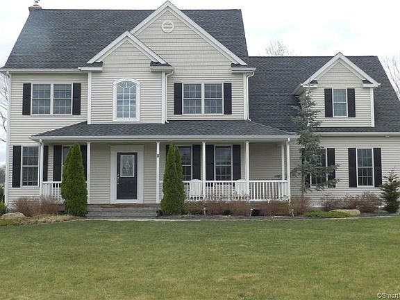 Welcome home to this pristine home located in one of Ellington's newer neighborhoods. This beautiful 2,725 sq. ft., 4 bedroom, 2.1 bath colonial style home with a covered front porch, has so much to offer with a great outdoor space including a pavers patio, built-in fire pit, built-in grill and refrigerator, a pergola completes this perfect backyard entertaining space. Inside is the impressive kitchen with custom cabinetry enhanced by the granite counters, gas cooktop, and stainless steel appliances, the eat-in space is bright and sunny and has a slider to the outdoor living area. The desirable open floor concept and neutral colors is another feature of this lovely home. The family room has a brick fireplace, and two sets of pocket doors to the first floor office. The dining room is located off the kitchen perfect for all your dinner guests and features crown molding, and chair rail. The upper level consists of a dream master bedroom suite with his and hers spacious walk-in closets, a welcoming full bath with two individual sinks/vanities, a relaxing jetted tub with a fabulous Palladian window, tile floor and a walk-in shower with glass doors. There are three other bedrooms and the laundry room on this level. Other features include a full basement, three car garage, central air, central vac, 1.71 acre country style lot and an outbuilding. This home has so much to offer, come and see if this is your next dream home