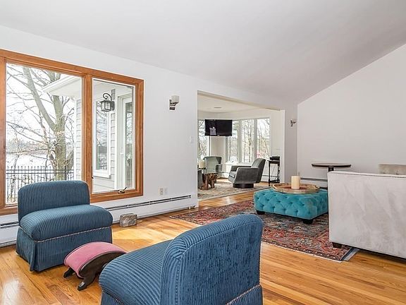 Rare opportunity for lakefront property with incredible vista. Enjoy a breathtaking view of Lake Cochituate in every season from this wonderful home. There are tall ceilings, open spaces, and windows galore. There is a casual family room and an additional living area with a fireplace. The kitchen has warm wood cabinetry and is adjacent to a generous dining area. The first-floor master suite has a deep closet and private bath and access to the wonderful patio. The second story has three additional family bedrooms. Off the garage is a bonus space that could be used as a mudroom or private office. Beautiful landscaping includes an expansive patio. This very special home is set on an ended way. What a lifestyle! Enjoy your own private waterfront retreat this summer!