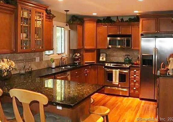Situated on a quiet cul de sac street this updated home offers so much. Open custom kitchen to dining room with large peninsula with granite counters and stainless steel appliance. Main living level has hardwood floors, Lower level carpets will be replace. Large deck off dining room overlooks level private .78 acres that backs up to woods. Inspections for informational purposes only.