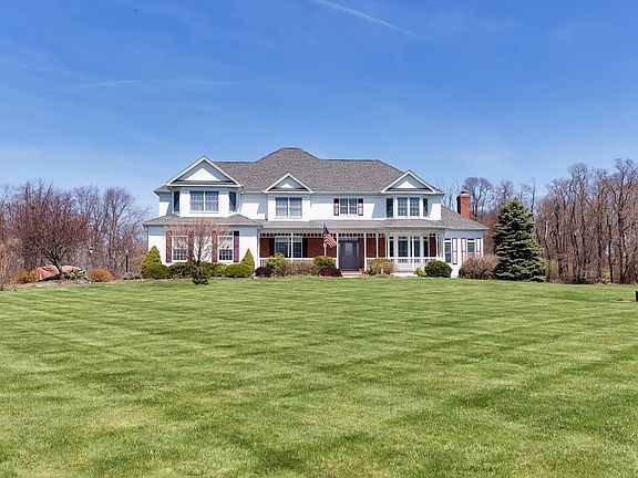 EXCEPTIONAL VALUE! PICTURESQUE 5 ACRES ON PREMIUM LOT IN POPULAR NEIGHBORHOOD! 4200 sq ft Custom PLUS Full In-Law Suite. Spectacular and level 5 acres in desirable cul-de-sac neighborhood. Center island gourmet kitchen. Cathedral ceiling family room w fireplace. Huge Master bedroom suite. Finished basement. Rocking chair front porch. Large formal living room w bay window. Formal dining room w oak floors and butler's pantry. Center island kitchen w maple cabinetry, tile floors and sunny breakfast area. Sunken cathedral ceiling family room w brick surround fireplace. Library. Tray ceiling master bedroom suite w sitting room, walk-in closet and master bath w jetted tub. All big bedrooms w access to a full bath. Separate In-law suite w full bath has areas for living, sleeping and dining. Transom topped windows. New carpeting. Freshly painted. Extraordinary 5 acres. Expansive rear deck.Lush landscaping.Great schools.Easy commute