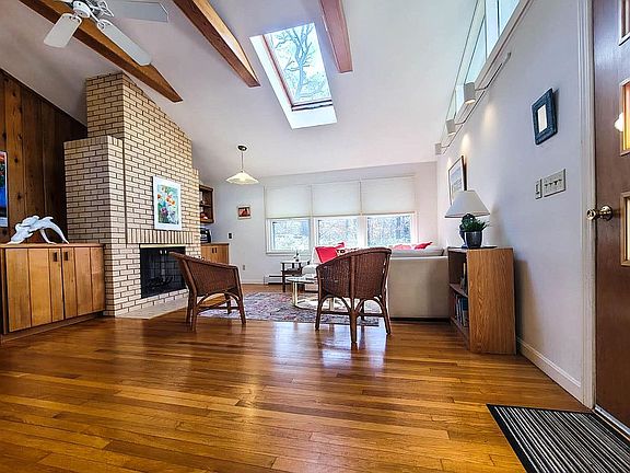 Outstanding Woods Hole location. Situated on a quiet road, minutes away from the Shining Sea bike path, beaches, and the picturesque center of Woods Hole village, this unique property was built in 1963 by South African architect Freda Kaminer. Her architectural training, influenced by Japanese and Mediterranean architectural styles and by Frank Lloyd Wright is reflected in this house. Open concept floor plan with a comfortable living room and a wood-burning fireplace, the kitchen, and a spacious dining area opening onto a large, brand new, raised deck. Two skylights and an oversized slider fill this space with natural light. A full bathroom and 3 bedrooms complete this level. The walk-out lower level provides great additional space with a large bedroom, a family room, a full bath, a large laundry room with a utility sink, and a smaller room with a fridge and a bench for your coffee machine and microwave. Brand new septic system. Fully finished basement included in the total square footage.