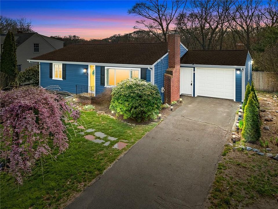 Welcome to 11 George St. This lovely, warm, wonderfully maintained home is one level living at its best. Beautiful, fireplaced living room flows seamlessly to updated, eat in kitchen offering stainless steel appliances, granite countertops, ample white cabinetry, and spacious, shelved pantry. Kitchen opens to generous, sun drenched four season room overlooking incredible, yard, with a beautiful, amazingly designed patio, must see to truly appreciate. This incredible outdoor space perfect for gatherings small or large, BBQ’s , or enjoy star-lit nights , overlooking private wooded area, tranquility at its best. Home boasts 2 generous bedrooms, 2 full baths. Lower level is nicely finished, w/ full bath , great room with kitchenette area, and has private entrance, perfect for in-law, master en-suite, etc. also offers lots of storage, and laundry area. The endless amenities include recently vinyl sided exterior, underground sprinklers, central air, pristine hard wood flooring thru out, new, highend fence, 4 zone gas heat, some closet updates professionally installed by “ Closets by Design” including new cabinetry/shelving in garage ( see pic). Minutes to shopping, dining, schools, Kent hospital. Conveniently located close to routes 95, 295, & 37. 20 minutes south to beaches, 12 minutes north to Providence.