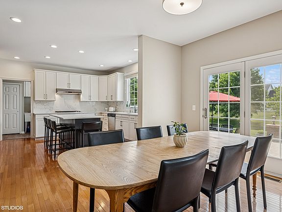 This luxury home built by Toll Brothers in 2009, offers an exceptional floor plan with 9-foot ceilings on both the first and second floors. Located in the desirable Woods of South Barrington, this property features 5+1 bedrooms and 4.1 bathrooms, with numerous upgrades enhancing its elegance and functionality. In 2023, the kitchen was fully remodeled to include painted cabinets, quartz countertops and backsplash, a new refrigerator, wall oven, microwave, gas stovetop, and a new drink refrigerator. Recent updates also include a new roof with oversized gutters and downspouts (2024), and a remodeled second-floor bathroom with new sink, countertop, and faucets (2024). The ejector pit and sump pump were replaced with a battery backup system in 2023, along with a new water heater in 2024. In 2022, the entire house interior was repainted, and new recessed lights were installed. The property also features exterior landscape lighting added in 2021, and exterior paint updates to the garage and shutters in 2020. The home offers a beautifully finished basement, renovated in 2013, which includes a bedroom and bathroom, while the brick paver patio was added in 2015. This park-like backyard is perfect for relaxation and entertainment. Both the south-facing kitchen and family room are designed to capture year-round sunlight, enhancing the home's warm and inviting atmosphere. The subdivision is rich in amenities, featuring walking and bike trails, nearby forest preserves, and a park district park within walking distance. The award-winning Blue Ribbon school district further enhances the appeal of the location. For those seeking convenience, The Arboretum offers shopping and fine dining within walking distance, and the proximity to the expressway ensures an easy commute.