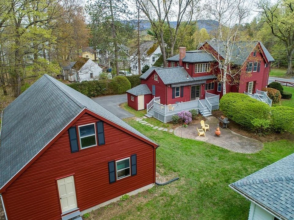 This classic Victorian features many original characteristics, yet offers numerous updates, and is located just 1/2 mile to vibrant downtown Easthampton! This home has been meticulously maintained by it's current owners for the past 60+ years. The first floor features an updated kitchen w/ newer appliances & gleaming oak floors w/ a black walnut accent, a formal dining room w/ built-in cabinetry, & spacious double living room w/ fireplace & a built-in bookshelf. There is also an office, 1/2 bath & convenient 1st floor laundry. On the second floor you will find three bedrooms, an updated bath, & a den with loads of natural light, a fireplace & a wall of built-in cabinets. There is a slider from the kitchen leading to a composite deck, overlooking the patio and rear yard. There is a wonderful, detached multi-level garage/barn with ample space for storage, workshop, etc. Pride of ownership is apparent throughout this home.